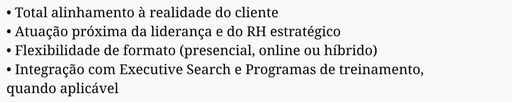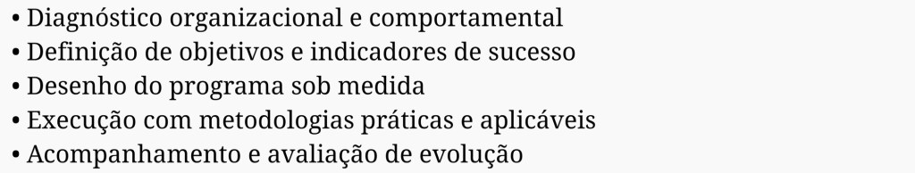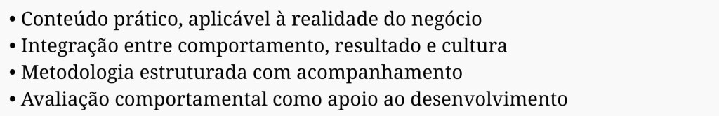 Não se trata de adaptação de conteúdo padrão, mas da construção de uma solução alinhada à estratégia, cultura, maturidade da liderança e objetivos do negócio.