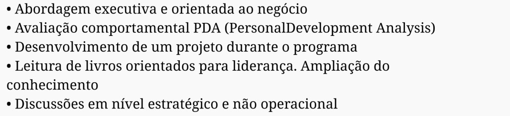 O programa trabalha desafios reais do negócio, preparando líderes para atuar em ambientes de alta complexidade, pressão e transformação.